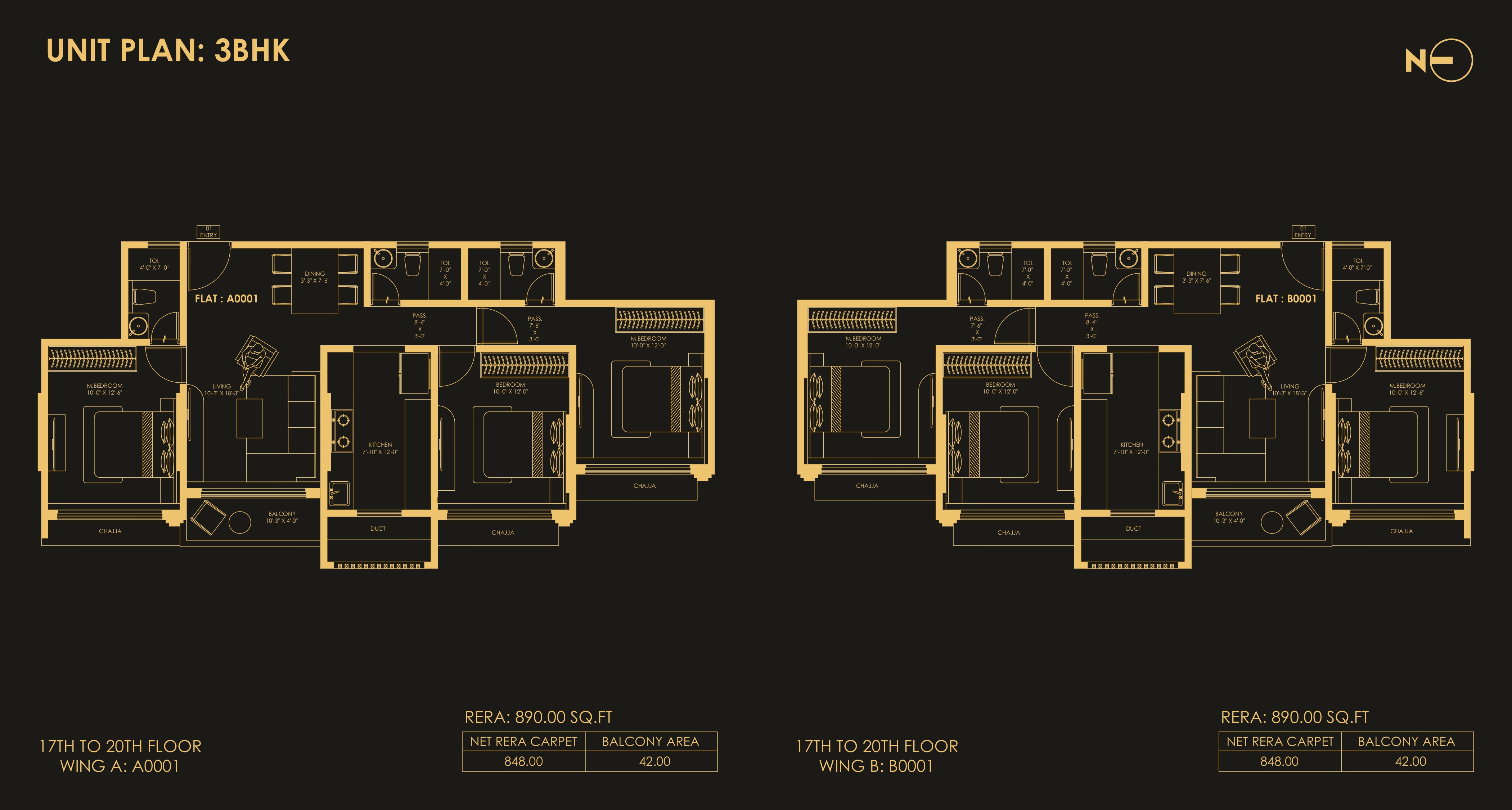 3 BHK 890 sq.ft